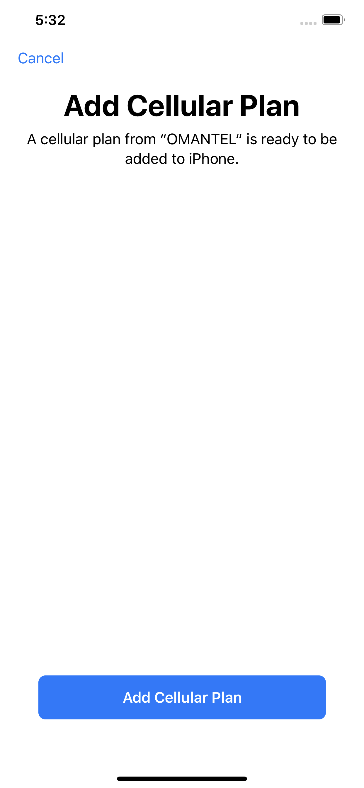 - Tap “Add Cellular Plan” and the camera will automatically launch