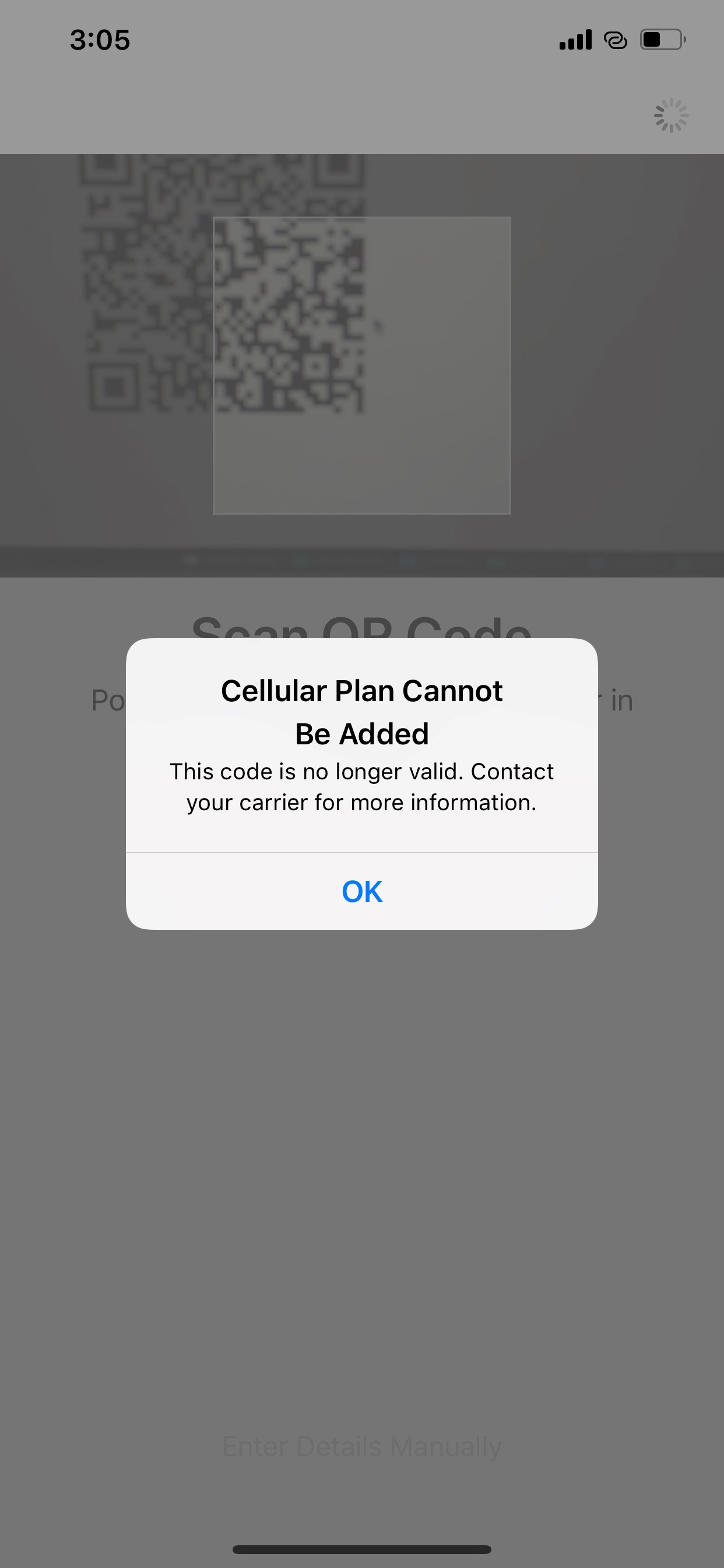 What if I get this message after activating my eSIM QR code?